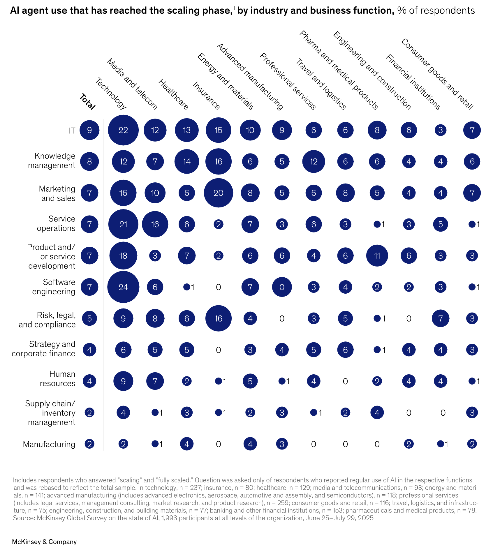 88% of respondents to a mid-2025 McKinsey survey reported use of AI in at least 1 business function, but no more than 10% reported use of AI Agents beyond a pilot phase for any business function. And among respondents at firms reaching the scaling stage, financial institutions lag most other industries across all business functions with the exception of risk, legal, and compliance.