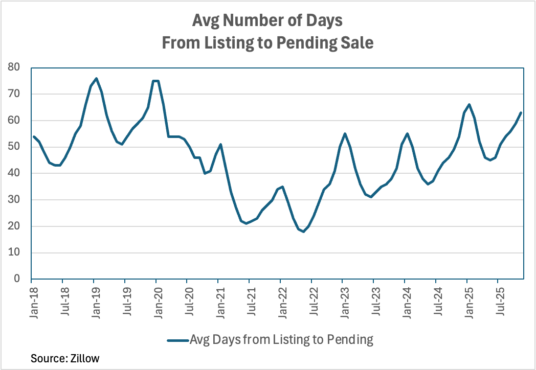 The time required to sell a home is also seasonal and is trending up as of late 2025.
