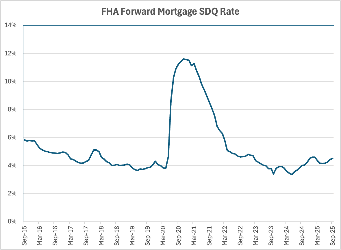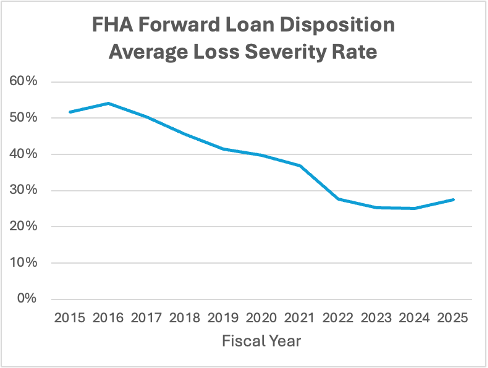 And though the FHA loss severity rate has been down significantly, supported by rapid home price-appreciation in the early ‘20’s, it ticked up in 2025: